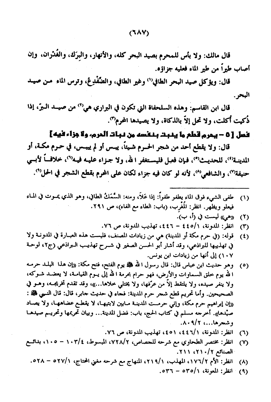قال ابن القاسم: وهذه السلحفاة التي تكون في البراري هي من صيد البّر، إذا ذُكيت أُكلت، ولا تحل إلاّ بالزكاة، ولا يصيدها المحرم.