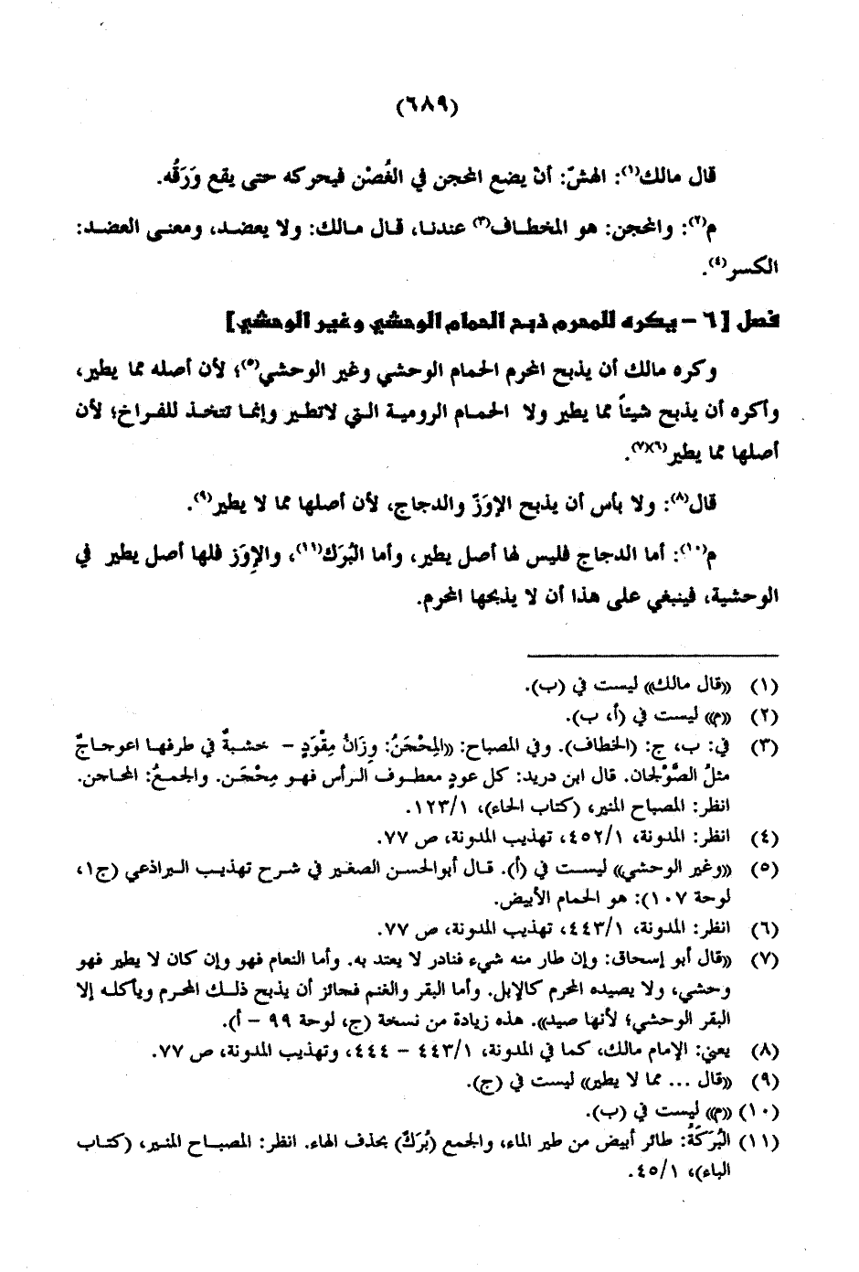م: أما الدجاج فليس لها أصل يطير، وأنا البُرَك، والإِوَز فلها أصل يطير في الوحشية، فينبغي على هذا أن لا يذبحها المحرم.