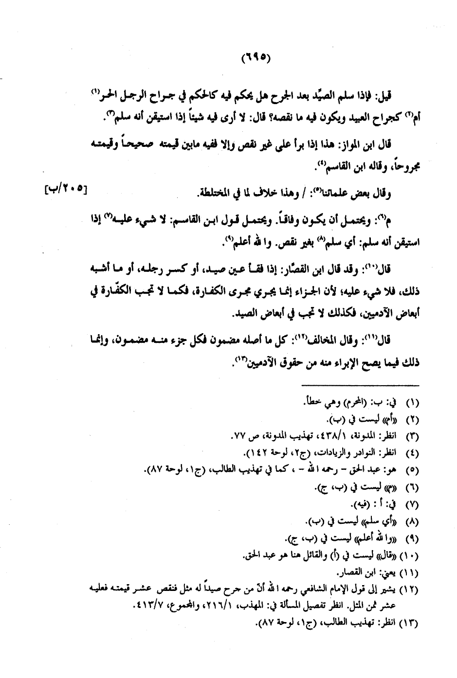 قيل: فإذا سلم الصِّيد بعد الجرح هل يحكم فيه كالحكم في جراح الرجل الحر أم كجراح العبيد ويكون فيه ما نقصه؟ قال: لا أرى فيه شيئاً إذا استيقن أنه سلم.