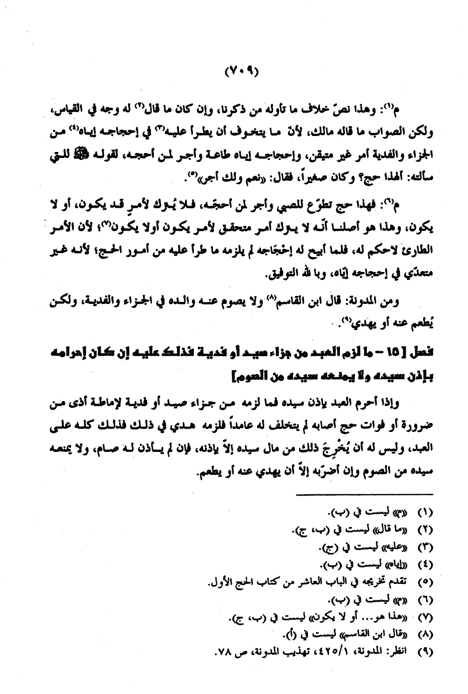 فصل [15 - ما لزم العبد من جزاء سيد أو فدية فذلك عليه إن كان إحرامه بإذن سيده ولا يمنعه سيده من الصوم]