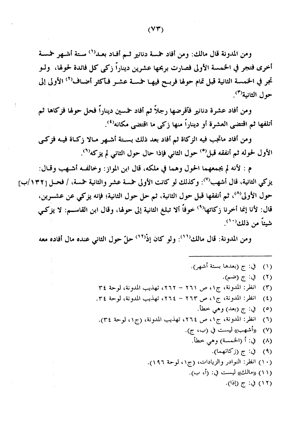 ومن المدونة قال مالك: ومن أفاد خمسة دنانير ثم أفاد بعد ستة أشهر خمسة أخرى فتجر في الخمسة الأولى فصارت بربحها عشرين دينارًا زكى كل فائدة لحولها، ولو تجر في الخمسة الثانية قبل تمام حولها فربح فيها خمسة عشر فأكثر أضاف الأولى إلى حول الثانية.