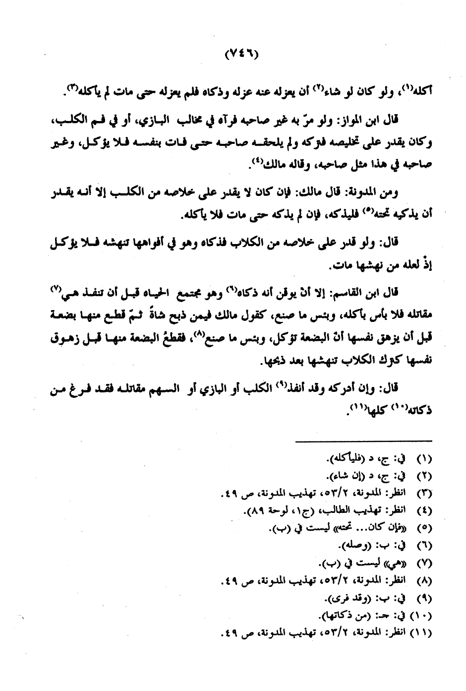 قال ابن القاسم: إلا أنْ يوقن أنه ذكاه وهو مجتمع الحياه قبل أن تنفذ هي مقاتله فلا بأس بأكله، وبئس ما صنع، كقول مالك فيمن ذبح شاةً ثمّ منها بضعة قبل أن يزهق نفسها أنّ البضعة تؤكل، وبئس ما صنع، فقطعُُ البضعة منها قبل زهوق نفسها كترك الكلاب تنهشها بعد ذبحها.