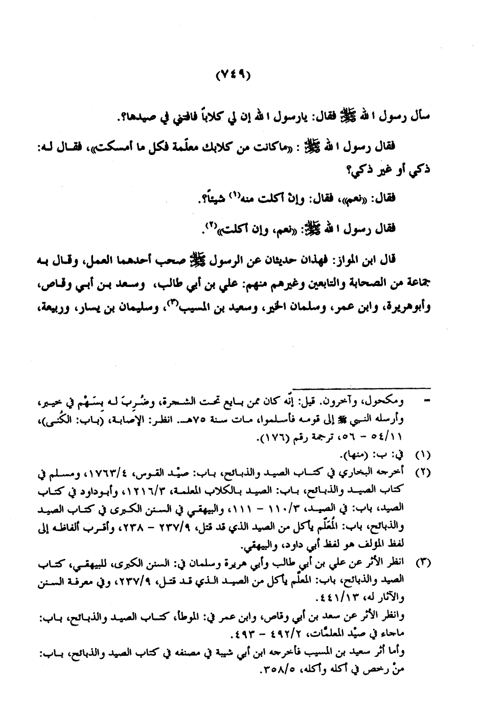 فقال رسول الله صلى الله عليه وسلم: «ما كانت من كلابك معلّمة فكل ما أمسكت»، فقال له: ذكي أو غير ذكي؟