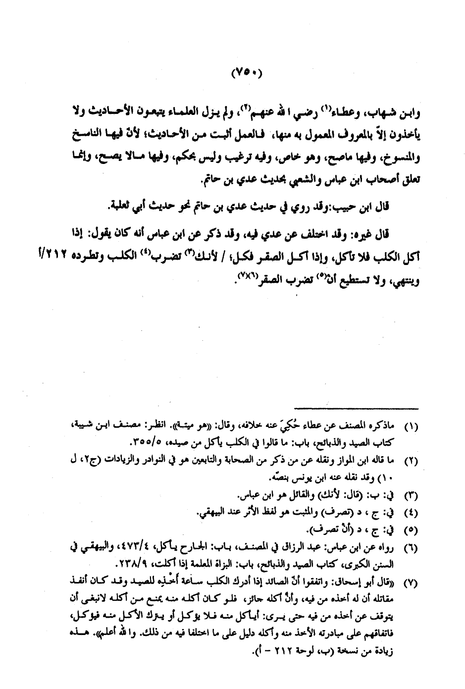 قال غيره: وقد اختلف عن عدي فيه، وقد ذكر عن ابن عباس أنه كان يقول: إذا أكل الكلب فلا تأكل، وإذا أكل الصقر فكل؛ / لأنك تضرب الكلب وتطرده 212/ أوينتهي، ولا يستطيع أنْ تضرب الصقر.