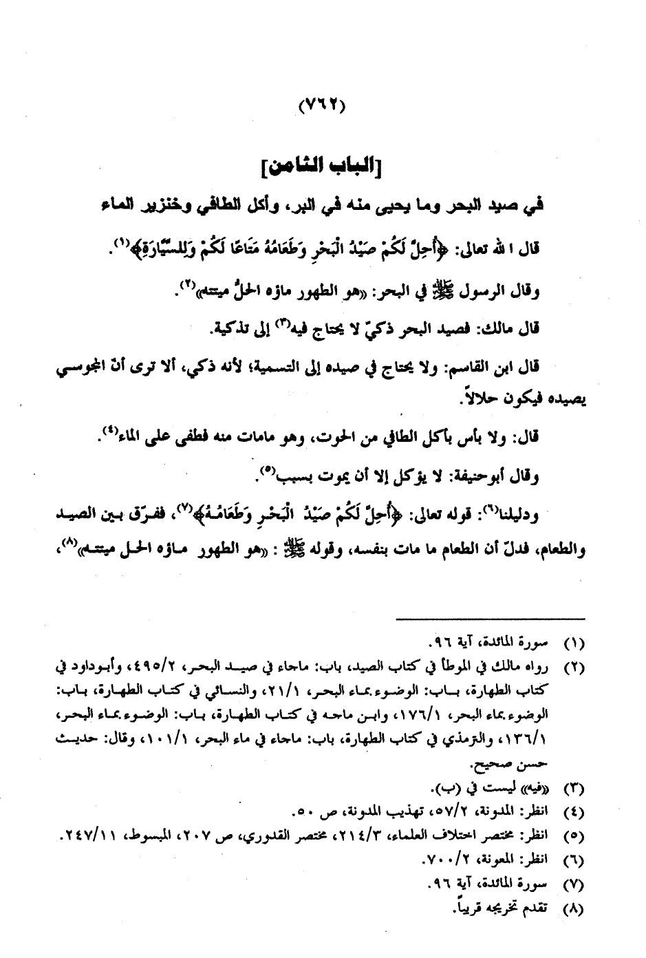 في صيد البحر وما يحيى منه في البر، وأكل الطافي وخنزير الماء