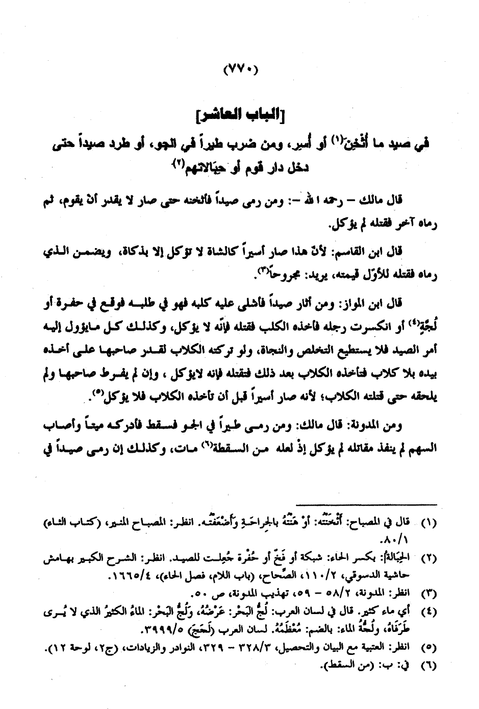 في صيد ما أثخن أو أسر، ومن ضرب طيراً في الجو، أو طرد صيداً حتى دخل دار قوم أو حبالاتهم