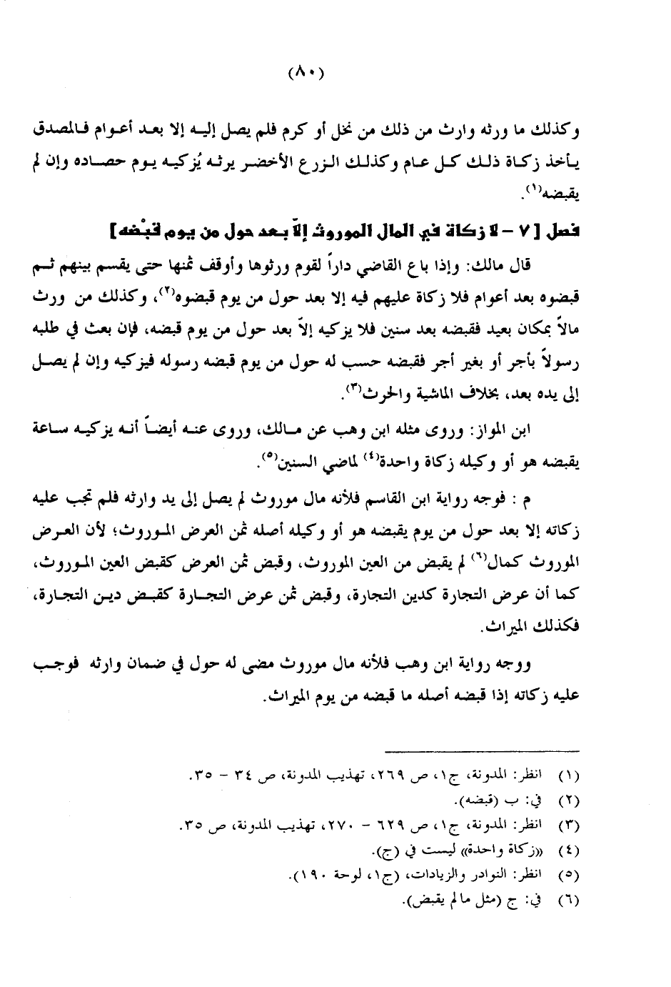 م: فوجه رواية ابن القاسم فلأنه مال موروث لم يصل إلى يد وارثه فلم تجب عليه زكاته إلا بعد حول من يوم يقبضه هو أو وكيله أصله ثمن العرض الموروث؛ لأن العرض الموروث كمال لم يقبض من العين الموروث، وقبض ثمن العرض كقبض العين الموروث، كما أن عرض التجارة كدين التجارة، وقبض ثمن عرض التجارة كقبض دين التجارة، فكذلك الميراث.