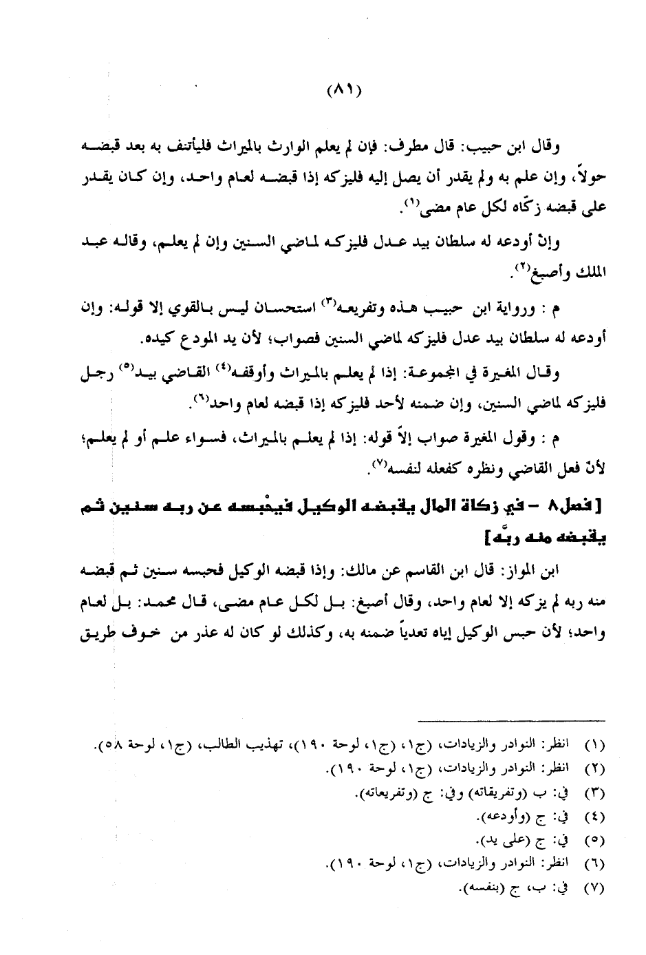 [فصل 8 - في زكاة المال يقبضه الوكيل فيحْبسه عن ربه سنين ثم يقبضه منه ربَّه]