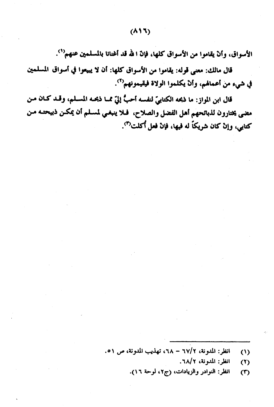 قال ابن المواز: ما ذبحه الكتابي لنفسه أحب إلي مما ذبحه المسلم، وقد كان من مضى يختارون لذبائحهم أهل الفضل والصلاح، فلا ينبغي لمسلم أن يمكن ذبيحته من كتابي، وإن كان شريكاً له فيها، فإن فعل أكلت