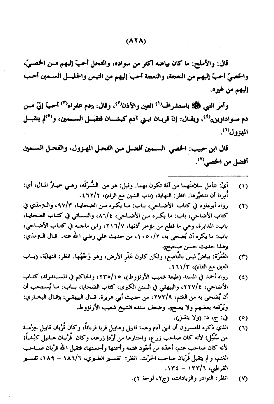 قال ابن حبيب: الخصي السمين أفضل من الفحل المهزول، والفحل السمين أفضل من الخصي.