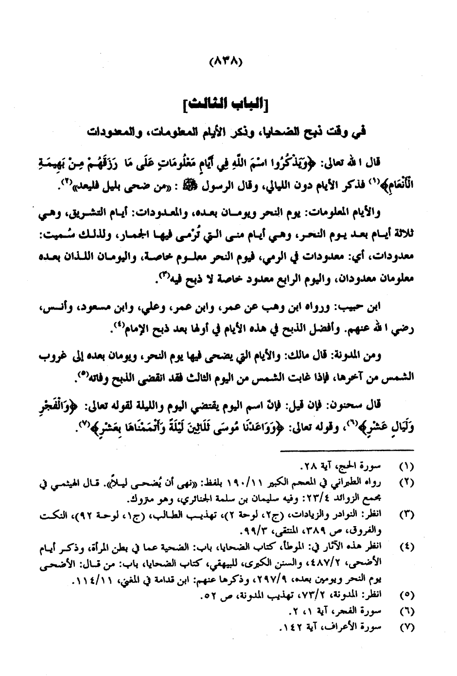في وقت ذبح الضحايا، وذكر الأيام المعلومات، والمعدودات