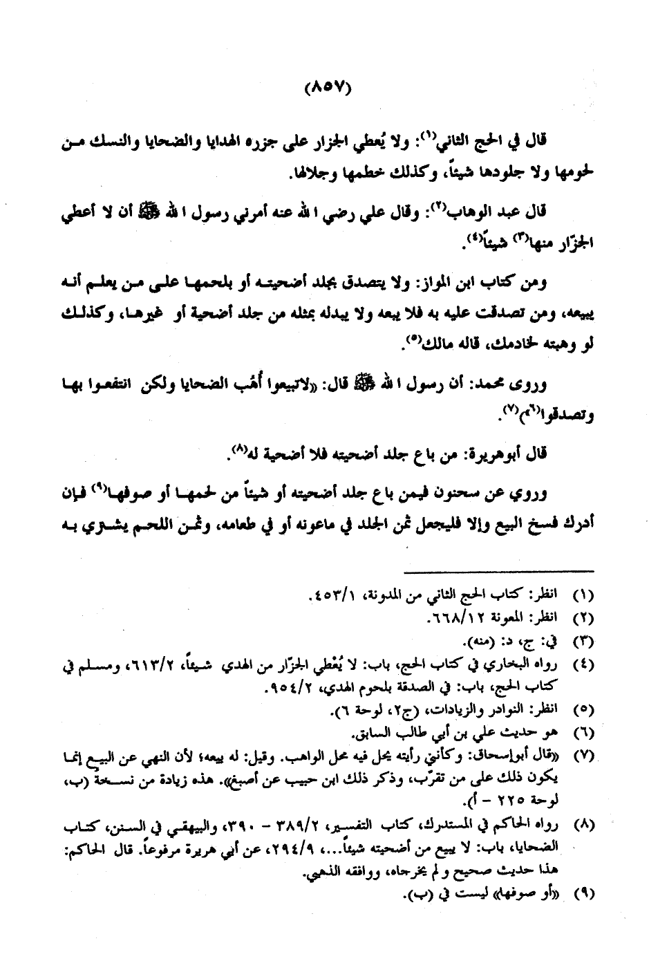 قال عبد الوهاب: وقال علي رضي الله عنه أمرني رسول الله صلى الله عليه وسلم أن لا أعطي الجزار منها شيئاً.