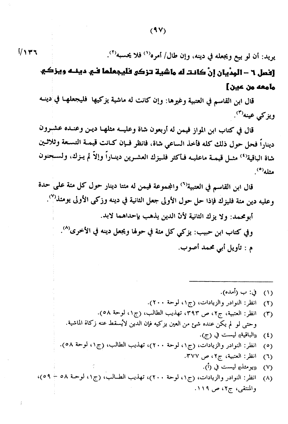 [فصل 6 - المِديان إن كانت له ماشية تزكى فليجعلها في دينه ويزكي ما معه من عين]