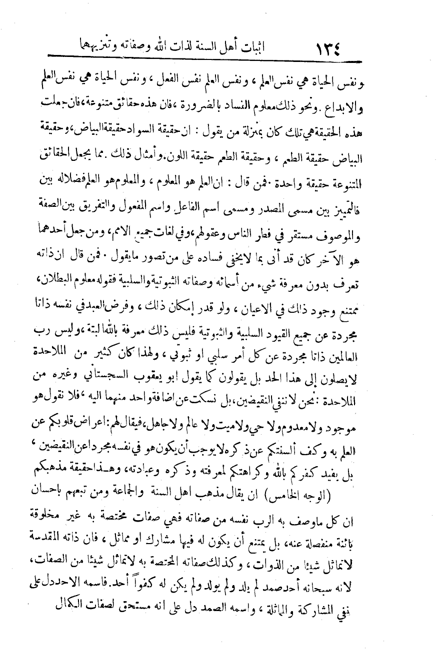 ونفس الحياة هي نفس العلم، ونفس العلم نفس الفعل، ونفس الحياة هي نفس العلم والإبداع، ونحو ذلك معلوم الفساد بالضرورة؛ فإن هذه حقائق متنوعة، فإن جعلت هذه الحقيقة هي تلك كان بمنْزلة من يقول: أن حقيقة السواد حقيقة البياض، وحقيقة البياض حقيقة الطعم، وحقيقة الطعم حقيقة اللون.