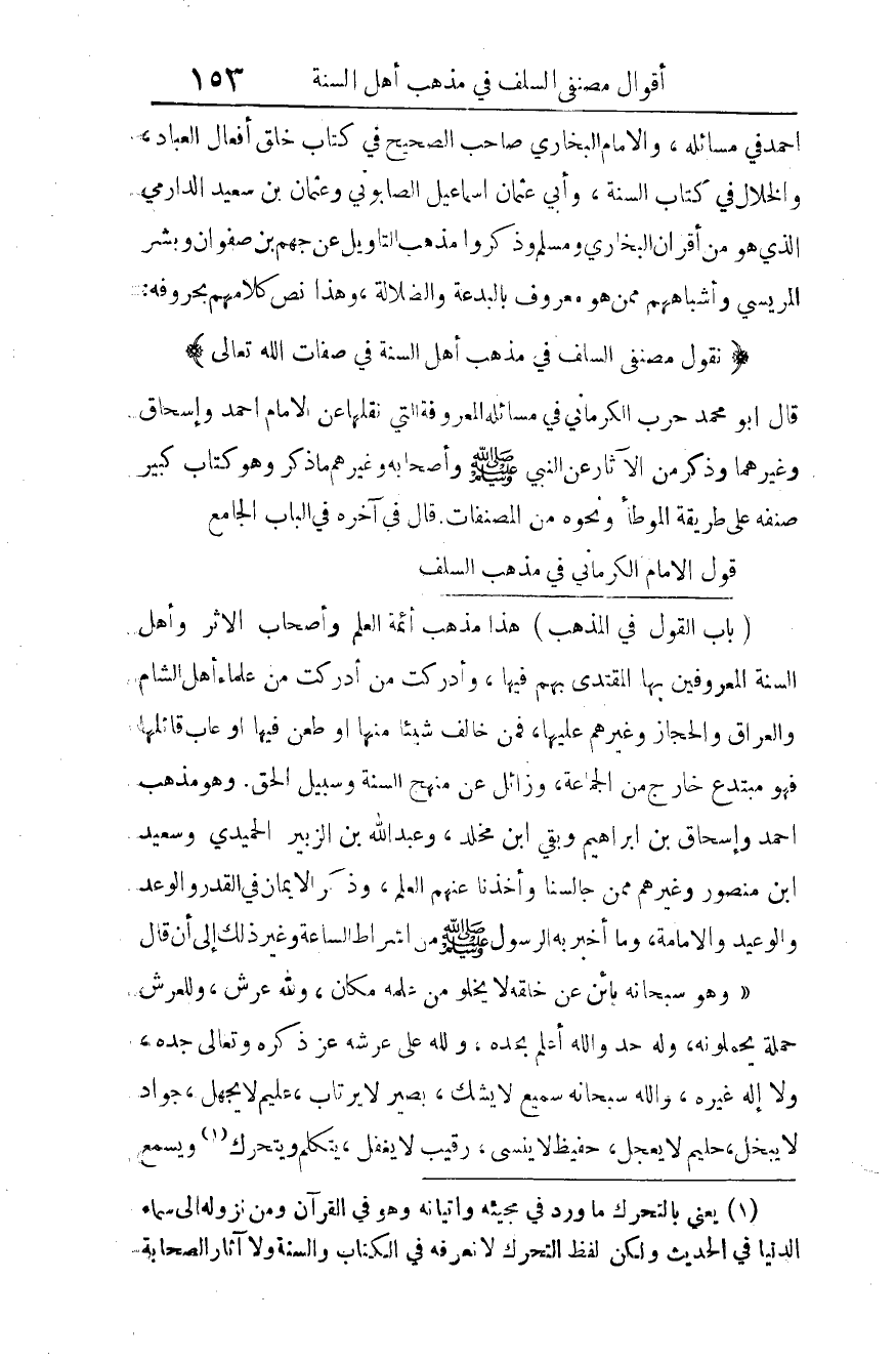 قول الإمام الكرماني في مذهب السلف: