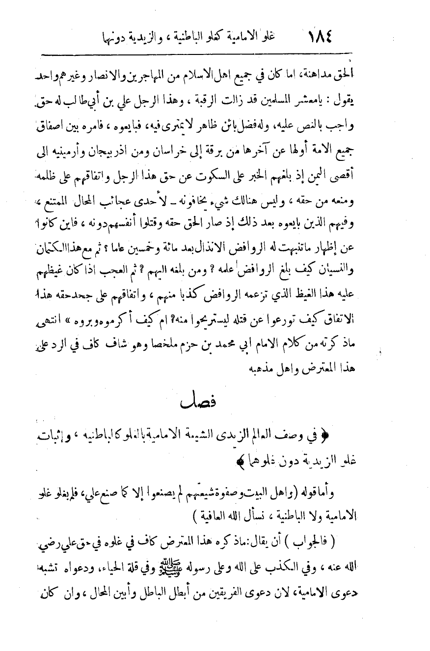 {في وصف العالم الزيدي الشيعة الإمامية بالغلو كالباطنية، وإثبات غلو الزيدية دون غلوهما}