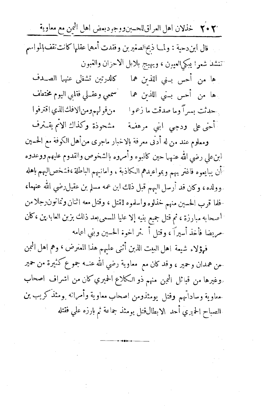 ومعلوم عند من له أدنى معرفة بالأخبار ما جرى من أهل الكوفة مع الحسين بن علي -رضي الله عنهما- حين كاتبوه، وأمروه بالشخوص والقدوم عليهم، ووعدوه أن يبايعوه، فاغتر بهم وبمواعيدهم الكاذبة، وأمانيهم الباطلة، فشخص إليهم بأهله وولده، وكان قد أرسل إليهم قبل ذلك ابن عمه مسلم بن عقيل -رضي الله عنهما-، فلما قرب الحسين منهم خذلوه، وأسلموه للقتل، وقُتِلَ معه اثنان وثمانون رجلا من أصحابه مبارزة، ثم قتل جميع بنيه إلا عليا المسمى بعد ذلك بزين العابدين، كان مريضا فأخذ أسيرا، وقتل أكثر إخوة الحسين وبني أعمامه.