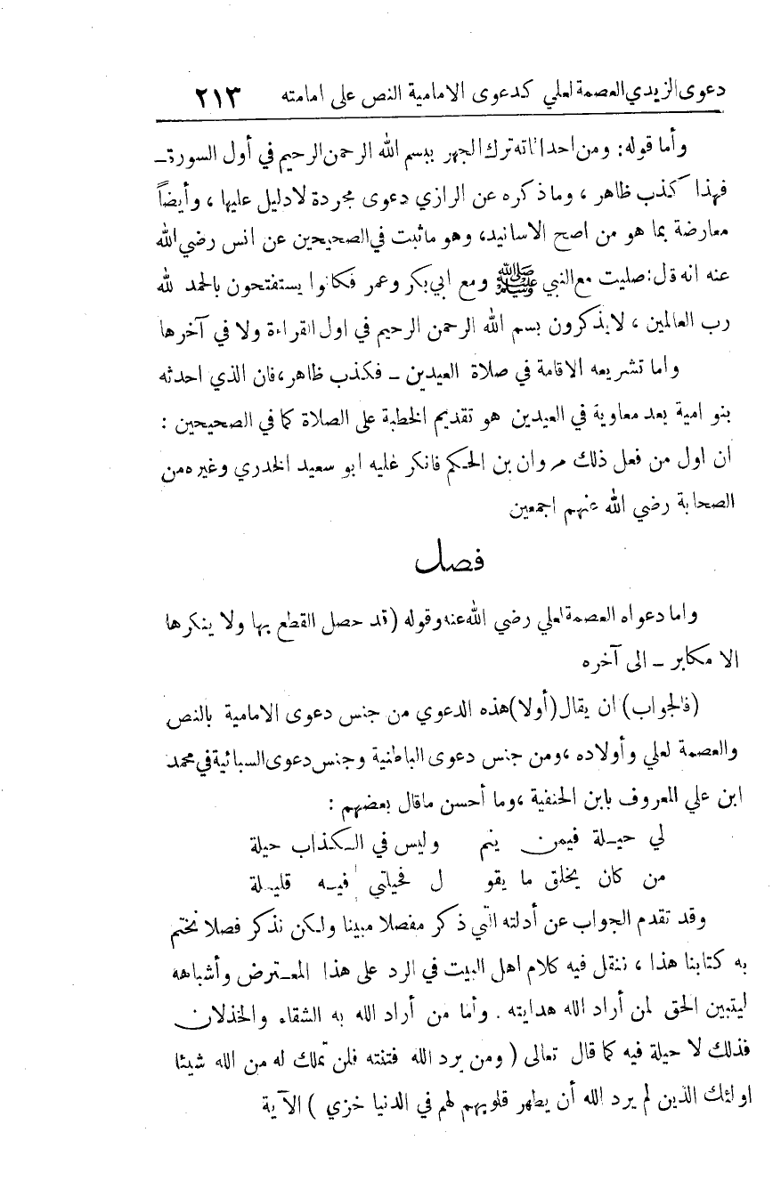 (فالجواب): أن يقال: (أولا) هذه الدعوي من جنس دعوى الإمامية بالنص والعصمة لعلي وأولاده، ومن جنس دعوى الباطنية، وجنس دعوى السبائية في محمد بن علي -المعروف بابن الحنفية-، وما أحسن ما قال بعضهم: