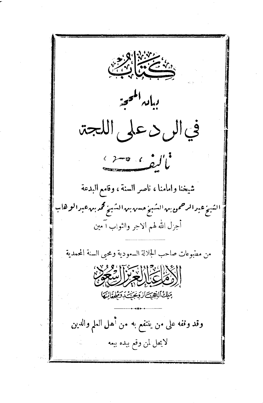 من مطبوعات صاحب الجلالة السعودية ومحيي السنة المحمدية