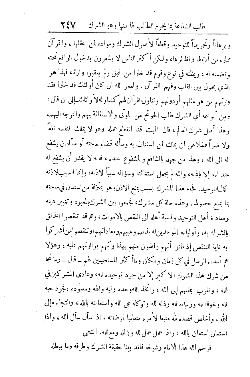 فرحم الله هذا الإمام وشيخه فلقد بينا حقيقة الشرك وطرقه وما يبطله.