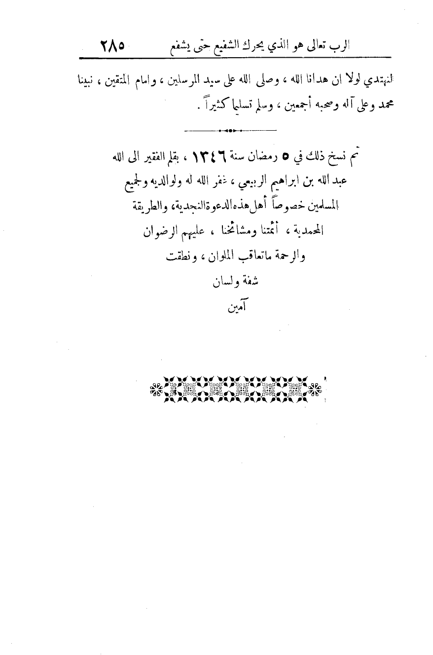 تم نسخ ذلك في 5 رمضان سنة 1346، بقلم الفقير إلى الله