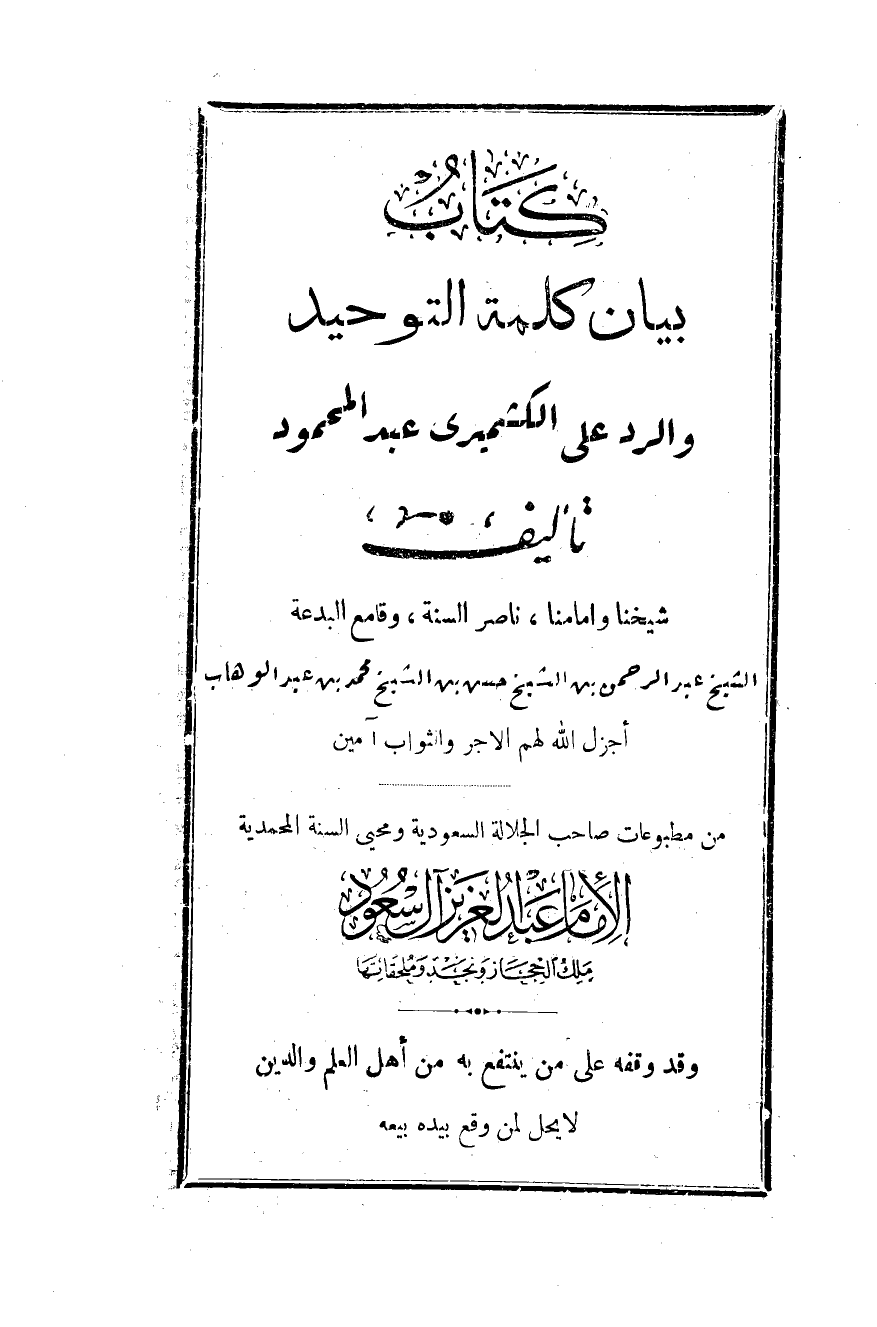 من مطبوعات صاحب الجلالة السعودية ومحيي السنة المحمدية