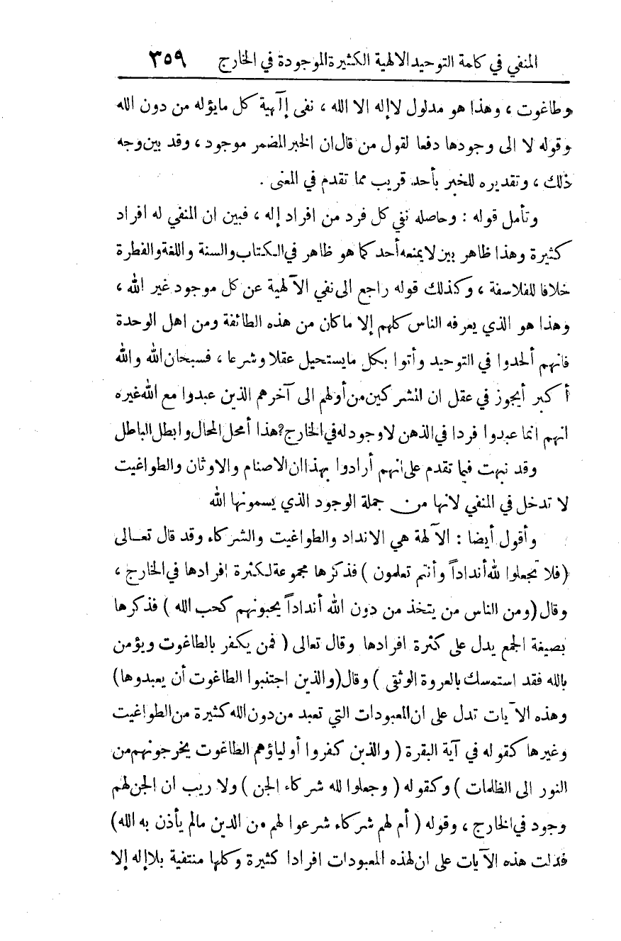 [المنفي في كلمة التوحيد الإلهية الكثيرة الموجودة في الخارج]