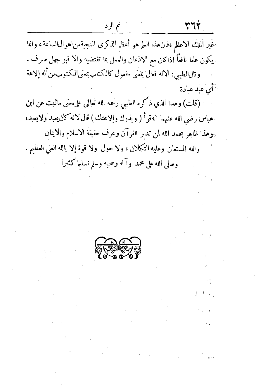 (قلت): وهذا الذي ذكره الطيبي -رحمه الله تعالى- على معنى ما ثبت عن ابن عباس -رضي الله عنهما- أنه قرأ: {ويذرك وإلاهتك} قال: لأنه كان يعبد ولا يعبد. وهذا ظاهر بحمد الله لمن تدبر القرآن، وعرف حقيقة الإسلام والإيمان.