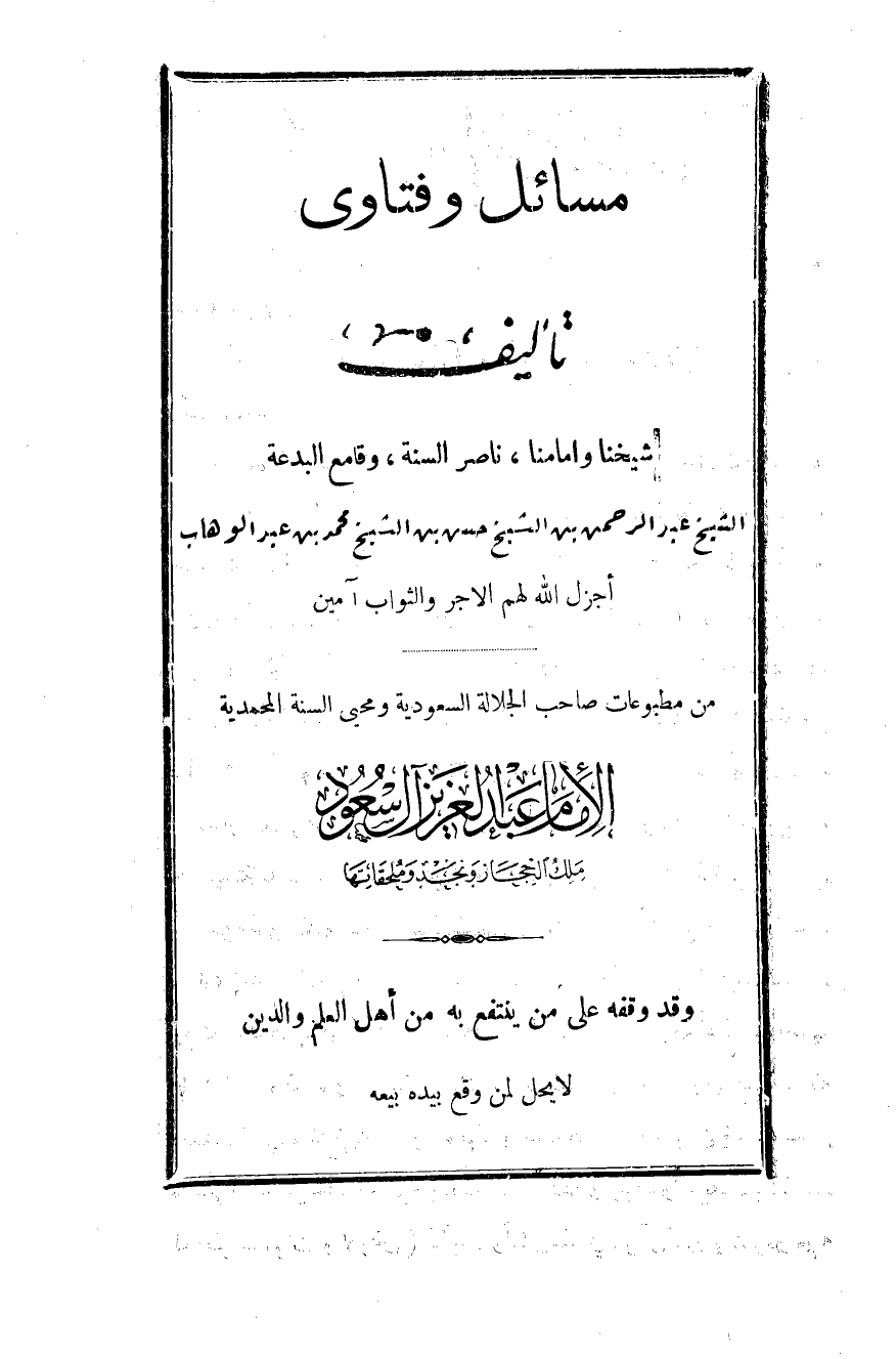 من مطبوعات صاحب الجلالة السعودية ومحيي السنة المحمدية