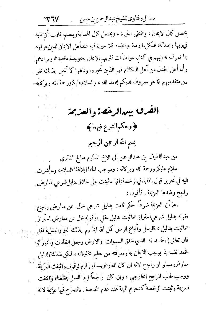 من عبد اللطيف بن عبد الرحمن إلى الأخ المكرم صالح الشثري: