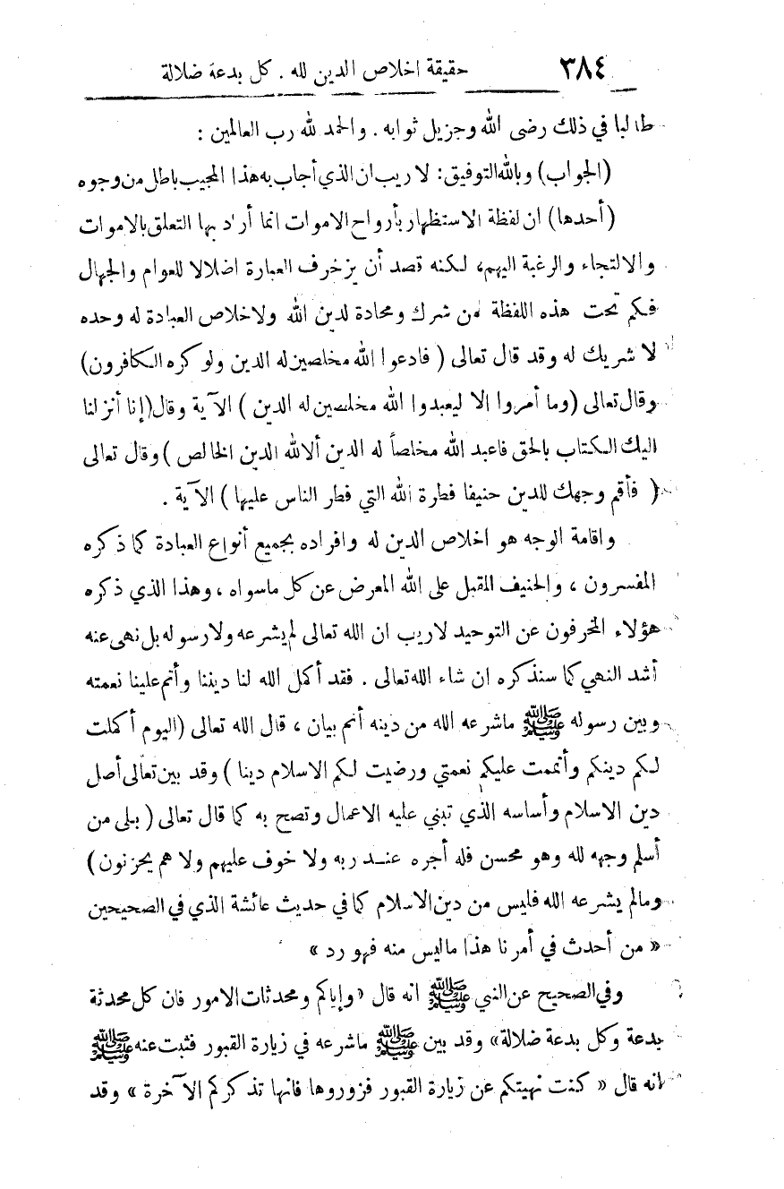 وقد قال -تعالى-: {فَادْعُوا اللَّهَ مُخْلِصِينَ لَهُ الدِّينَ وَلَوْ كَرِهَ الْكَافِرُونَ} 1، وقال -تعالى-: {وَمَا أُمِرُوا إِلَّا لِيَعْبُدُوا اللَّهَ مُخْلِصِينَ لَهُ الدِّينَ} 2 الآية، وقال: {إِنَّا أَنْزَلْنَا إِلَيْكَ الْكِتَابَ بِالْحَقِّ فَاعْبُدِ اللَّهَ مُخْلِصًا لَهُ الدِّينَ أَلا لِلَّهِ الدِّينُ الْخَالِصُ} 3.
