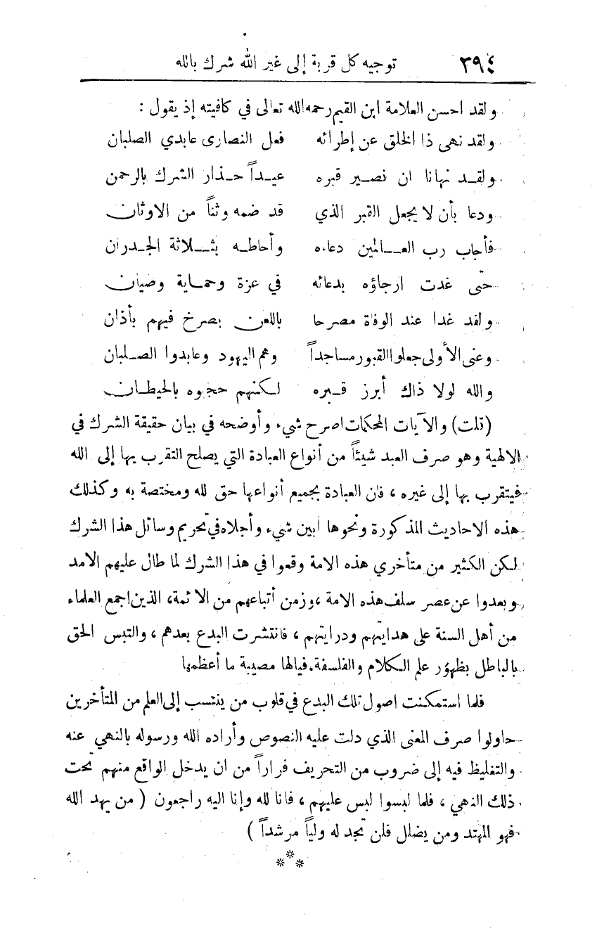ولقد أحسن العلامة ابن القيم -رحمه الله تعالى- في كافيته إذ يقول: