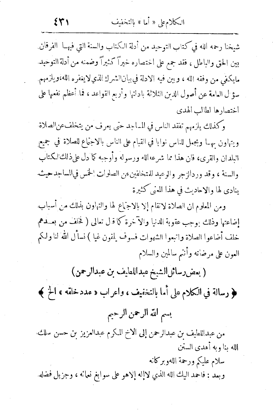 (بعض رسائل الشيخ عبد اللطيف بن عبد الرحمن)