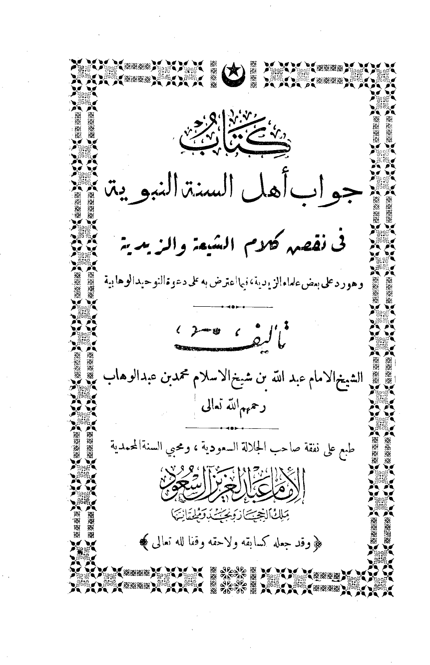 طبع على نفقة صاحب الجلالة السعودية، ومحيي السنة المحمدية
