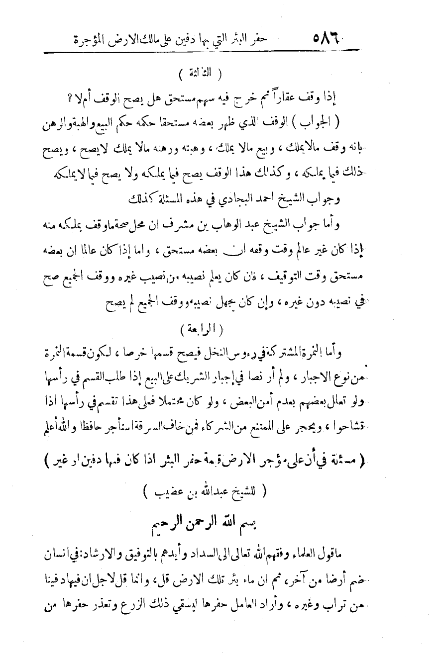 (مسألة في أن على مؤجر الأرض قيمة حفر البئر إذا كان فيها دفين أو غيره)
