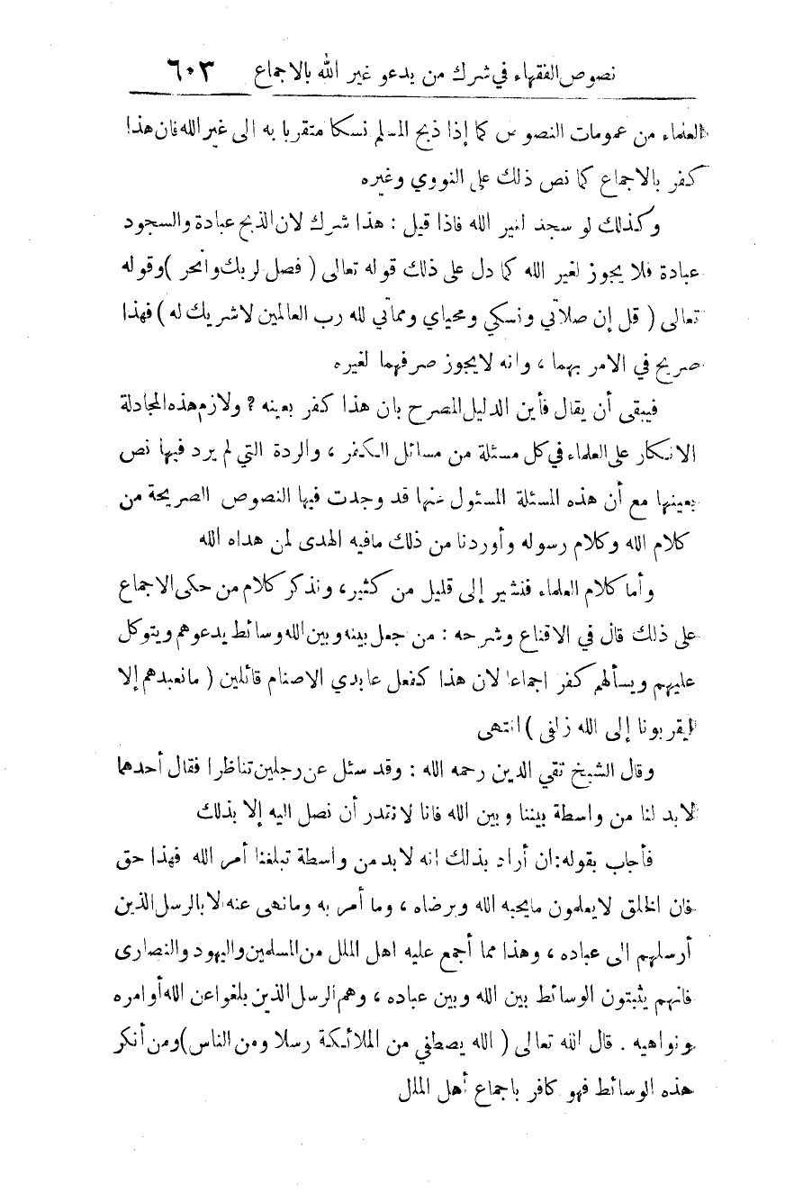 [نصوص الفقهاء في شرك من يدعو غير الله بالإجماع]