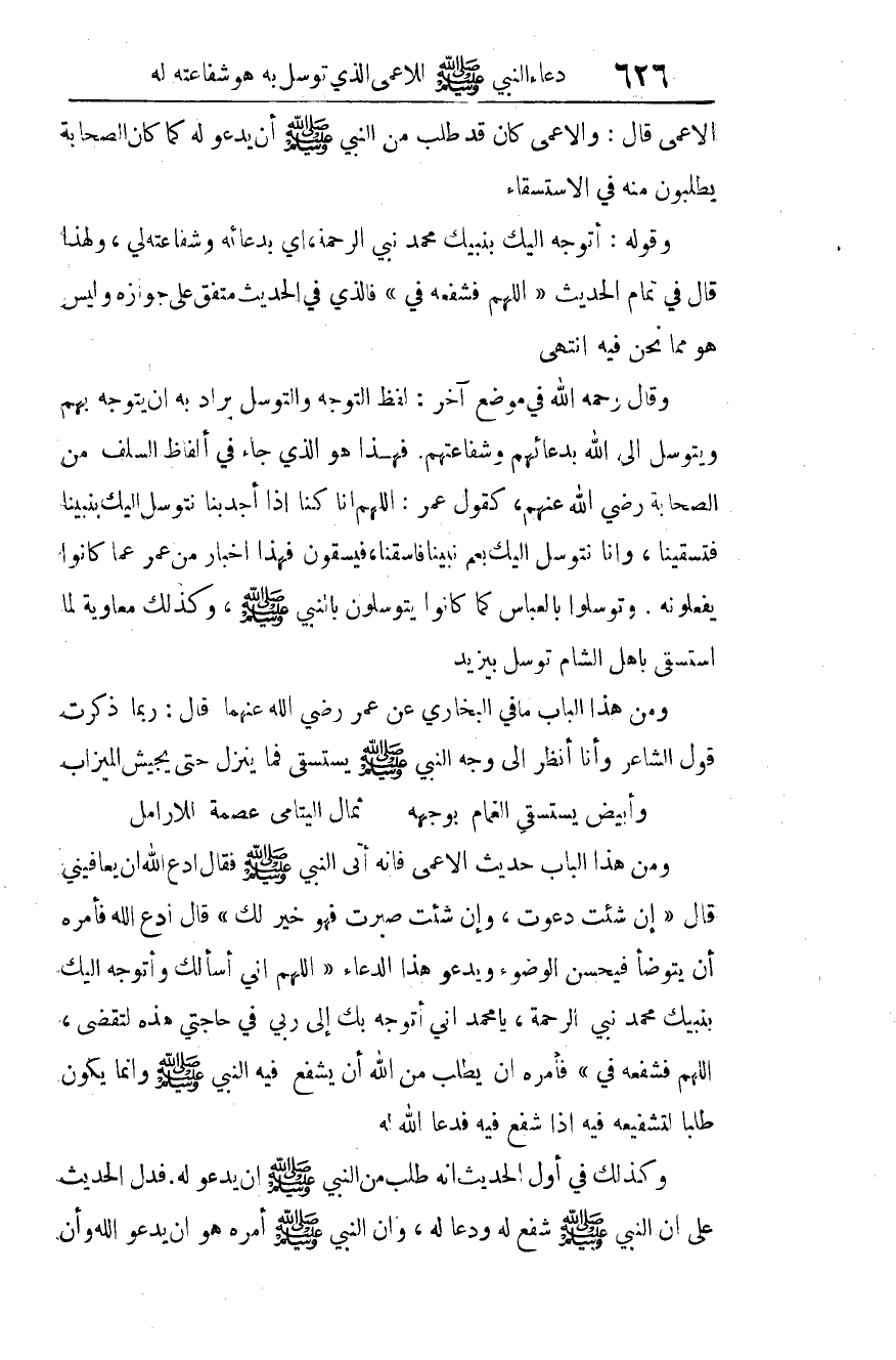 الأعمى- قال: والأعمى كان قد طلب من النبي صلى الله عليه وسلم أن يدعو له كما كان الصحابة يطلبون منه في الاستسقاء.