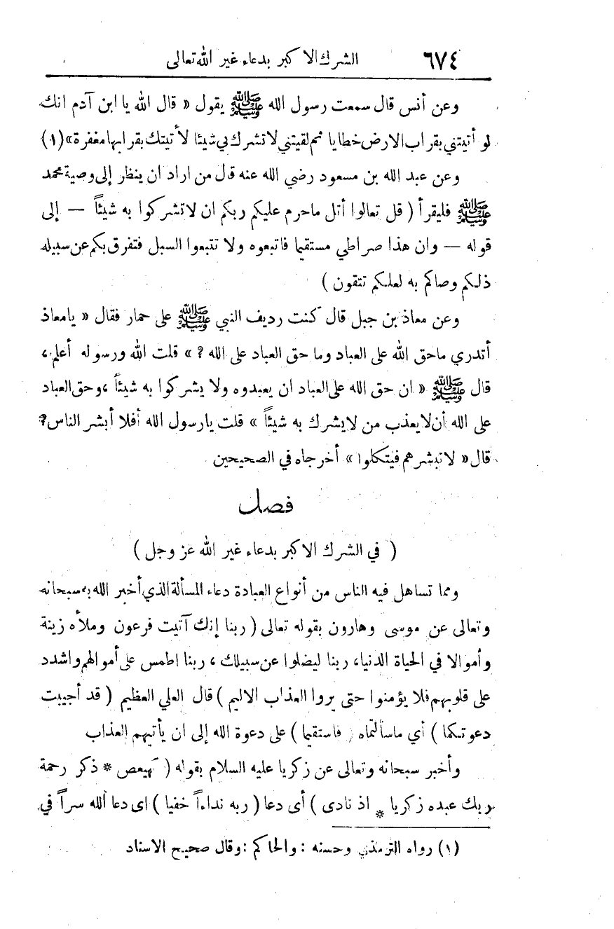 (في الشرك الأكبر بدعاء غير الله عز وجل)