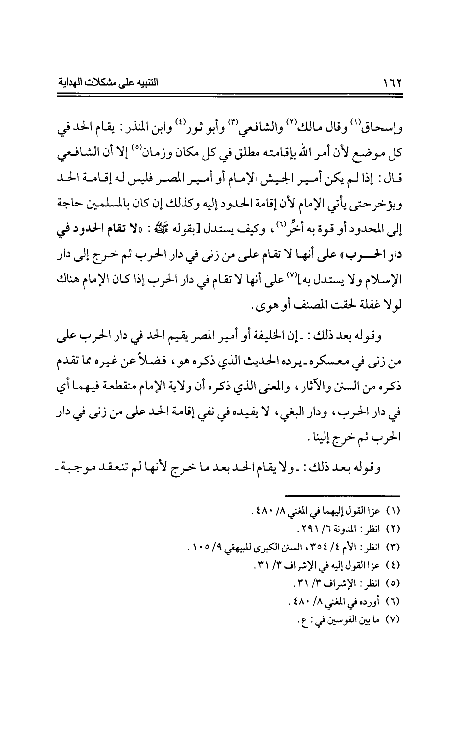 وقوله بعد ذلك: -إن الخليفة أو أمير المصر يقيم الحد في دار الحرب على من زنى في معسكره -يرده الحديث الذي ذكره هو، فضلاً عن غيره مما تقدم ذكره من السنن والآثار، والمعنى الذي ذكره أن ولاية الإمام منقطعة فيهما أي في دار الحرب، ودار البغي، لا يفيده في نفي إقامة الحد على من زنى في دار الحرب ثم خرج إلينا.