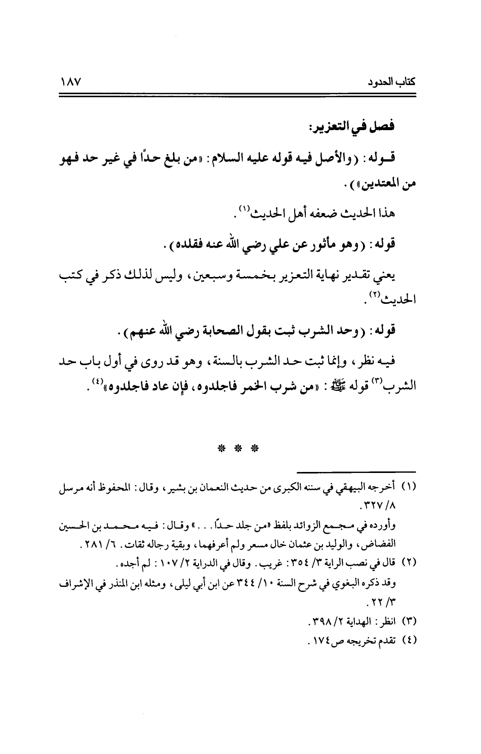 قوله: (والأصل فيه قوله -عليه السلام -: "من بلغ حدًا في غير حد فهو من المعتدين").
