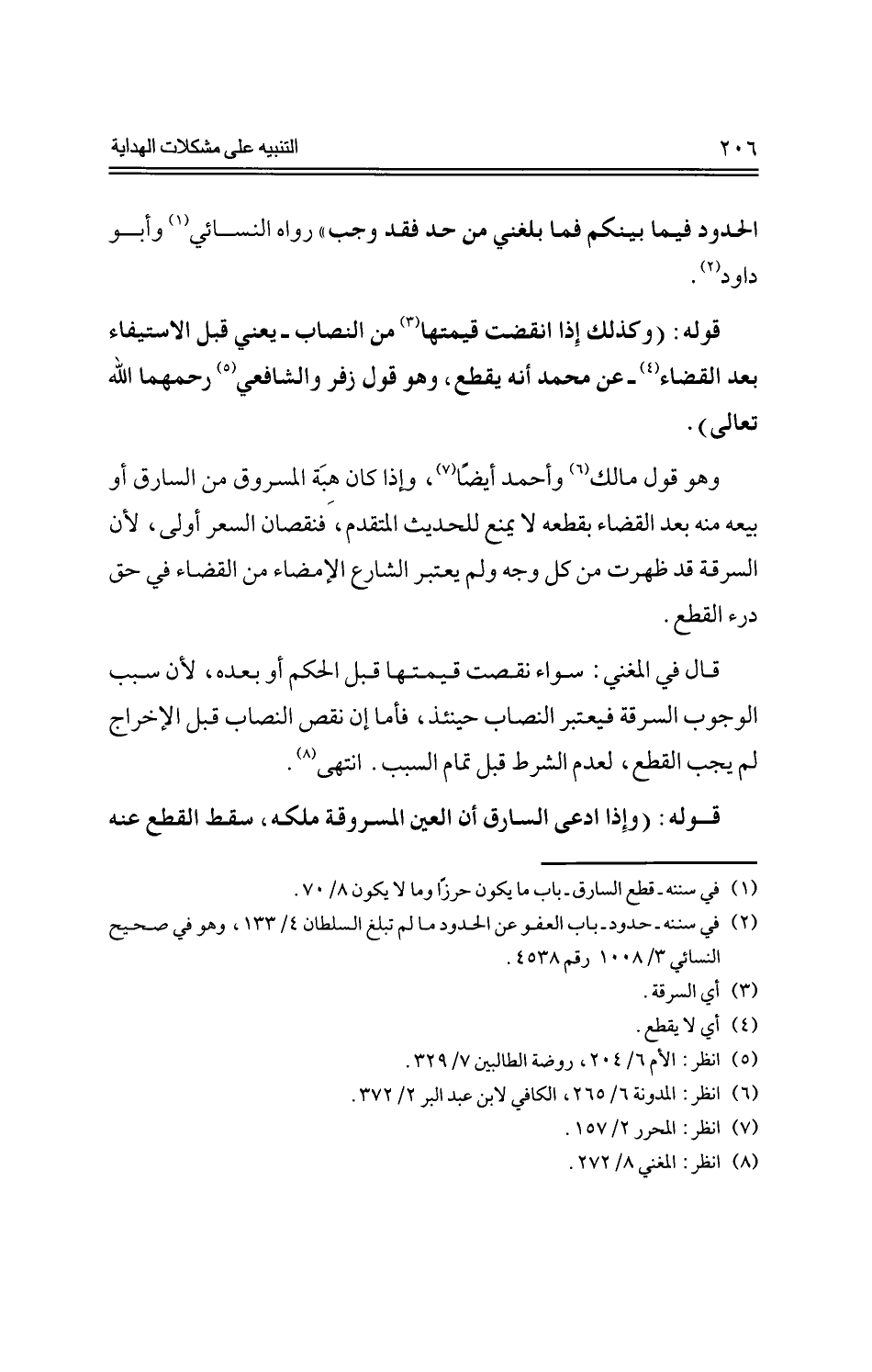 وهو قول مالك وأحمد أيضًا، وإذا كان هبة المسروق من السارق أو بيعه منه بعد القضاء بقطعه لا يمنع للحديث المتقدم، فنقصان السعر أولى، لأن السرقة قد ظهرت من كل وجه ولم يعتبر الشارع الإمضاء من القضاء في حق درء القطع.