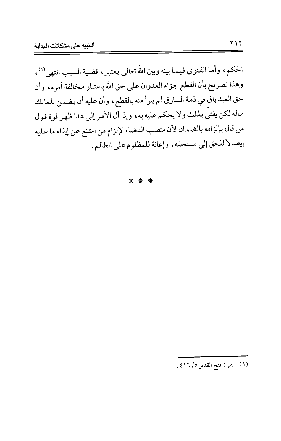الحكم، وأما الفتوى فيما بينه وبين الله تعالى يعتبر، قضية السبب انتهى، وهذا تصريح بأن القطع جزاء العدوان على حق الله باعتبار مخالفة أمره، وأن حق العبد باق في ذمة السارق لم يبرأ منه بالقطع، وأن عليه أن يضمن للمالك ماله لكن يفتى بذلك ولا يحكم عليه به، وإذا آل الأمر إلى هذا ظهر قوة قول من قال بإلزامه بالضمان لأن منصب القضاء الإلزام من امتنع عن إيفاء ما عليه إيصالًا للحق إلى مستحقه، وإعانة للمظلوم على الظالم.