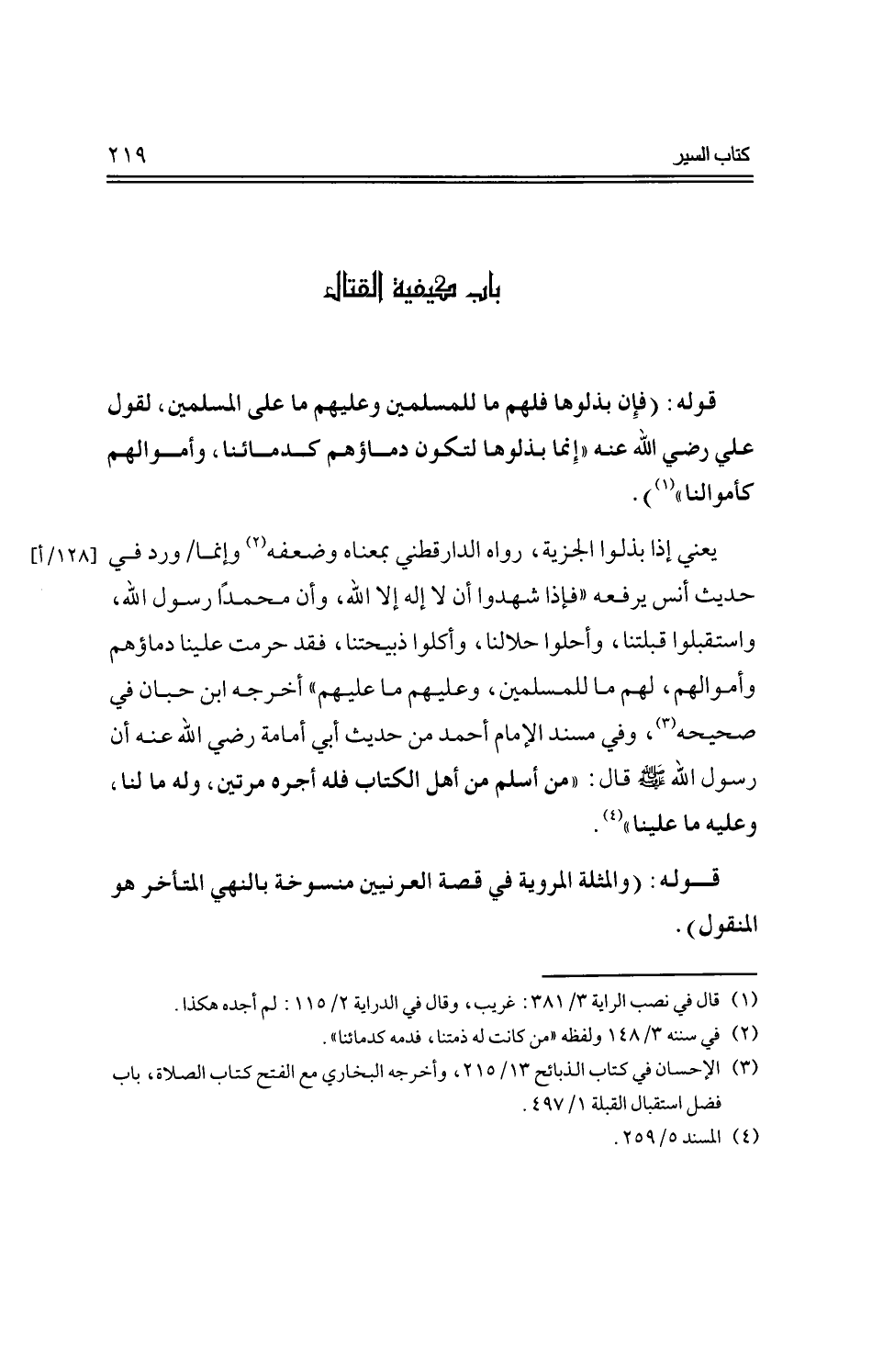 قوله: (فإن بذلوها فلهم ما للمسلمين وعليهم ما على المسلمين، لقول علي -رضي الله عنه- "إنما بذلوها لتكون دماؤهم كدمائنا، وأموالهم كأموالنا").