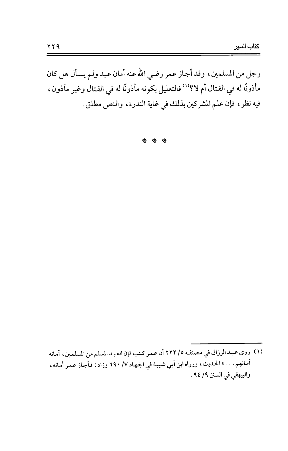 رجل من المسلمين، وقد أجاز عمر -رضي الله عنه- أمان عبد ولم يسأل هل كان مأذونًا له في القتال أم لا؟ فالتعليل بكونه مأذونًا له في القتال وغير مأذون، فيه نظر، فإن علم المشركين بذلك في غاية الندرة، والنص مطلق.