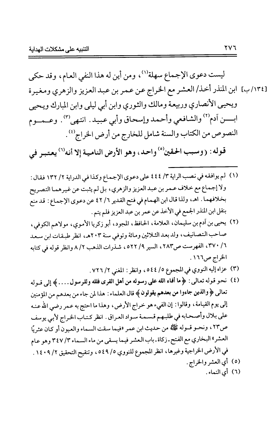 ليست دعوى الإجماع سهلة، ومن أين له هذا النفي العام، وقد حكى ابن المنذر أخذ العشر مع الخراج عن عمر بن عبد العزيز والزهري ومغيرة ويحيى الأنصاري وربيعة ومالك والثوري وابن أبي ليلى وابن المبارك ويحيى ابن آدم والشافعي وأحمد وإسحاق وأبي عبيد. انتهى. وعموم النصوص من الكتاب والسنة شامل للخارج من أرض الخراج.