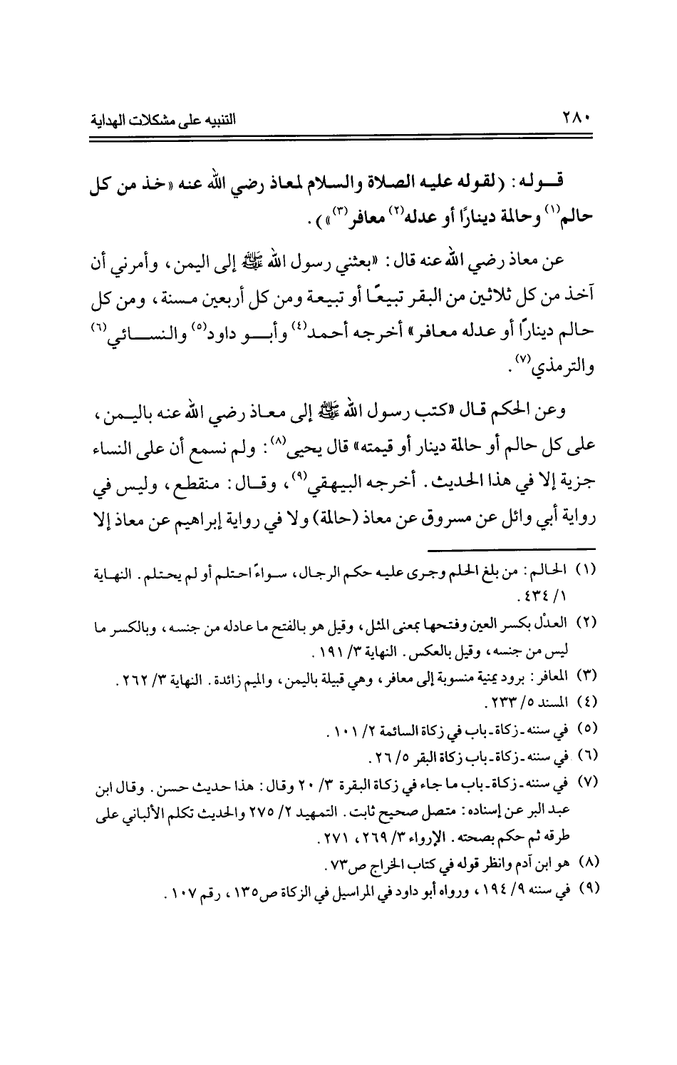 قوله: (لقوله عليه الصلاة والسلام لمعاذ رضي الله عنه "خذ من كل حالم وحالمة دينارًا أو عدله معافر").