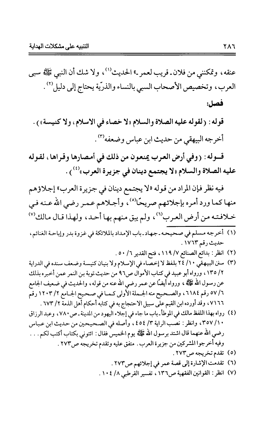 قوله: (وفي أرض العرب يمنعون من ذلك في أمصارها وقراها، لقوله عليه الصلاة والسلام "لا يجتمع دينان في جزيرة العرب").