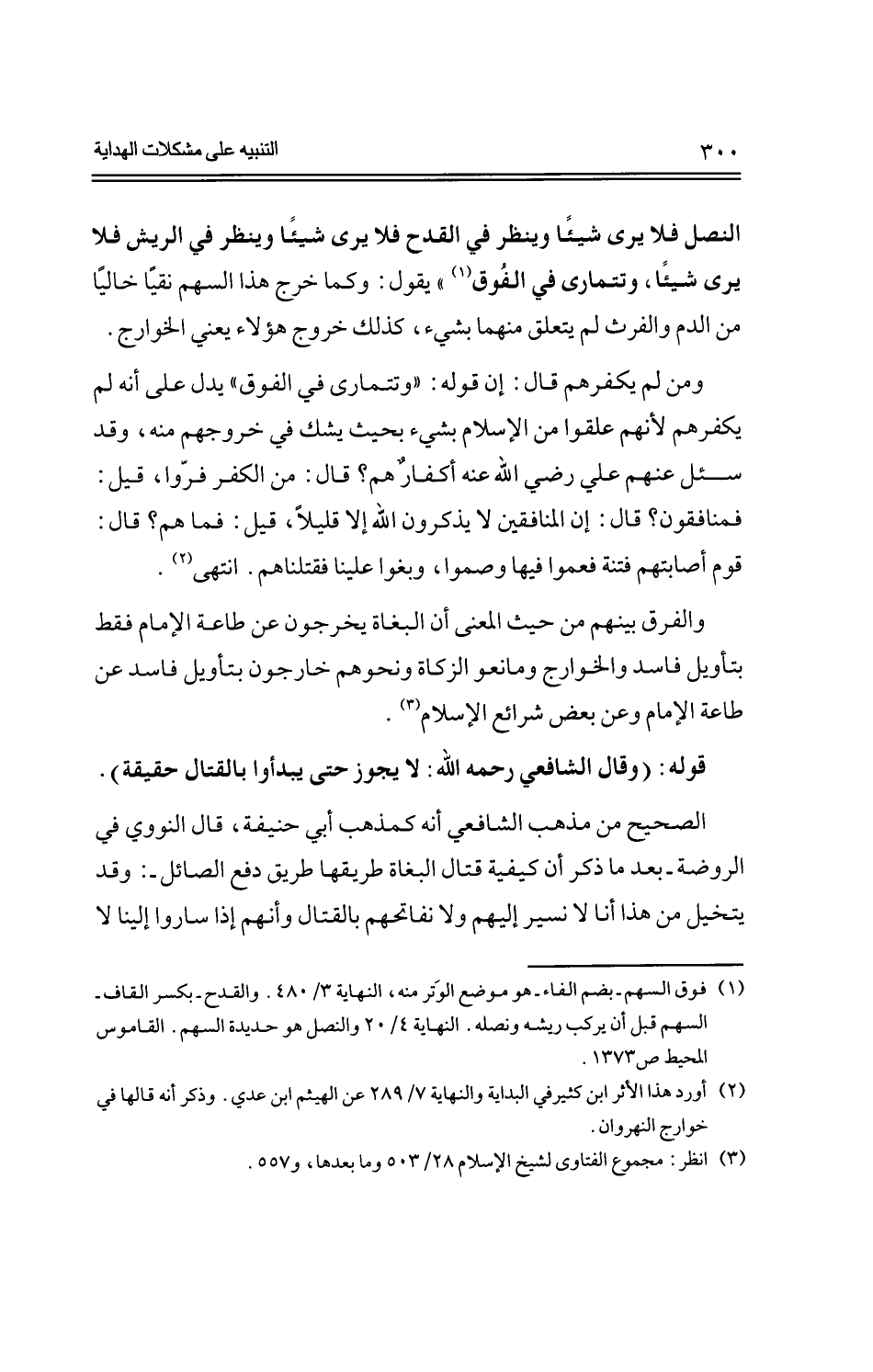 ومن لم يكفرهم قال: إن قوله: "وتتمارى في الفوق" يدل على أنه لم يكفرهم لأنهم علقوا من الإسلام بشيء بحيث يشك في خروجهم منه، وقد سئل عنهم علي رضي الله عنه أكفار هم؟ قال: من الكفر فروا، قيل: فمنافقون؟ قال: إن المنافقين لا يذكرون الله إلا قليلاً، قيل: فما هم؟ قال: قوم أصابتهم فتنة فعموا فيها وصموا، وبغوا علينا فقتلناهم. انتهى.