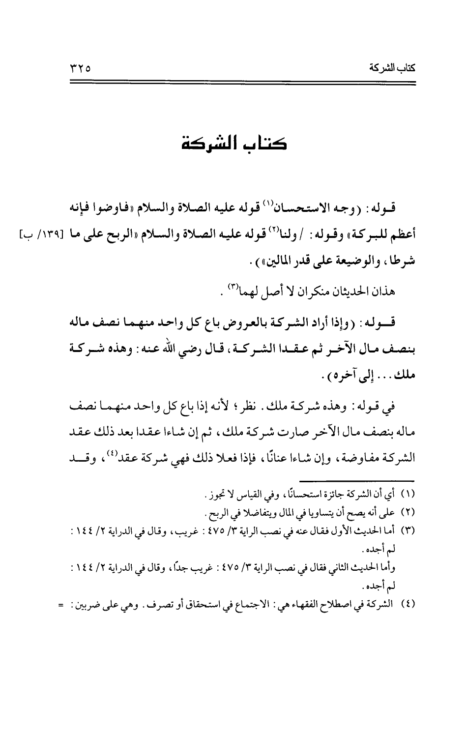 قوله: (وجه الاستحسان قوله عليه الصلاة والسلام "فاوضوا فإنه أعظم للبركة" وقوله: ولنا قوله عليه الصلاة والسلام "الربح على ما شرطا، والوضيعة على قدر المالين").