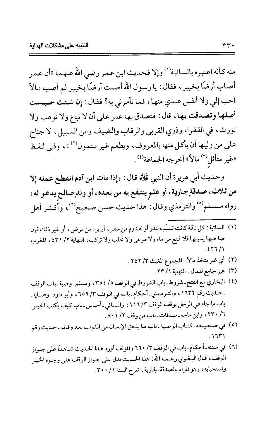 منه كأنه اعتبره بالسائبة وإلا فحديث ابن عمر رضي الله عنهما "أن عمر أصاب أرضًا بخيبر، فقال: يا رسول الله أصبت أرضًا بخيبر لم أصب مالاً أحب إلي ولا أنفس عندي منها، فما تأمرني به؟ فقال: إن شئت حبست أصلها وتصدقت بها، قال: فتصدق بها عمر على أن لا تباع ولا توهب ولا تورث، في الفقراء وذوي القربى والرقاب والضيف وابن السبيل، لا جناح على من وليها أن يأكل منها بالمعروف، ويطعم غير متمول"، وفي لفظ "غير متأثلٍ مالاً" أخرجه الجماعة.